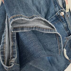 Stylish light blue flare jeans. Perfect for a chic, casual look. Comfortable and trendy.