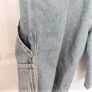 Signature by Levi Strauss faded blue men's Carpenter denim shorts; fly zip; 5-pocket; single slip pocket on right leg; 100% cotton.