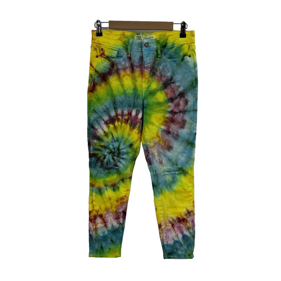 Signature by Levi Strauss Womens 8 Tie Dye Distressed Mid Rise Skinny Crop Jeans Colorful Festival Y2K Retro Psychedelic Funky Expressive Trendy
