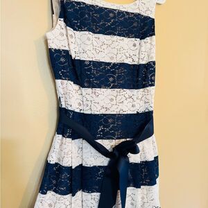 Embrace a relaxed resort vibe with this sleeveless sundress from Signature by Robbie Bee, featuring a chic square neckline. The blue and white stripes lend a nautical charm, while the fitted bodice and A-line silhouette ensure a flattering fit. A matching fabric belt accentuates the waist, adding a touch of elegance to this breezy midi dress.