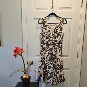 Signature by Robbie Bee Brown and Cream Leaf Print Midi Dress