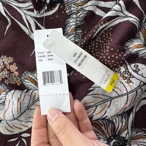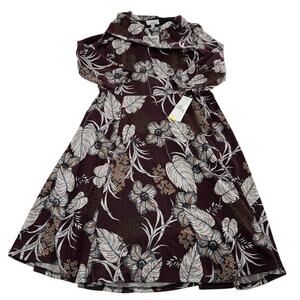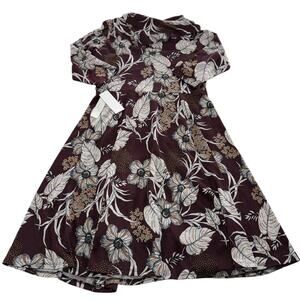 Signature by Robbie Bee Dress Womens Petite Medium Wine Floral Cowl Neck PM NWT