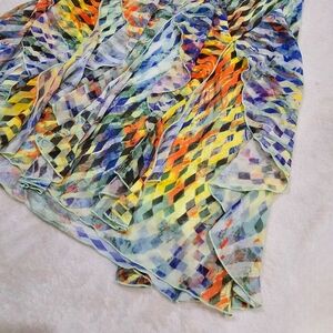 Signature by Robbie Bee ✦ Geometric Midi Dress ✦ Sleeveless Fairy Ruffle Hem 8P