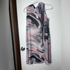 Signature by Robbie Bee Pink and Gray Swirl Midi Dress