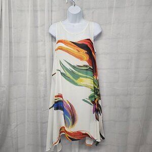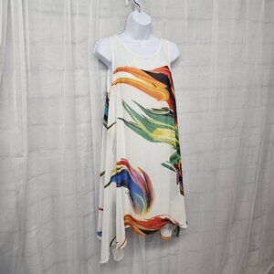 Signature by Robbie Bee White Multicolor Sleeveless Dress Abstract Shift 10P