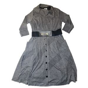 Signature by Robbie Bee Womens Size XL Belted Cowl Neck Dress Pockets Gray Lined