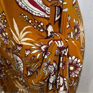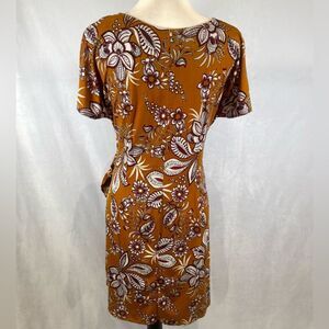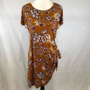 Shirt sleeve faux wrap dress with side tie. Stretchy material with floral pattern with puff print design. EUC