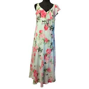 Signature by Robbie Bee size 14 Women's Floral Print Ruffle V-Neck Dress Fairy