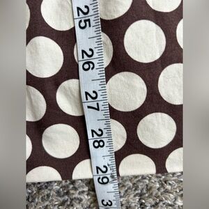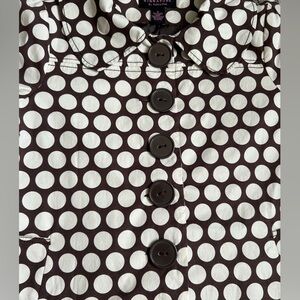 Signature by Robbie Bee large polka dot pattern on brown and cream. Chunky brown buttons up the front and detailing the 3/4 sleeves. Functional side pockets and nicely lined. Bell like hemline. Cute and fashionable.