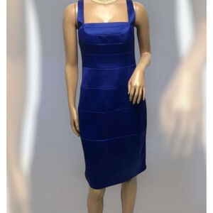 Signature by Sangria Blue Cocktail Dres Size 8 Sheath Sateen Party Wedding Guest