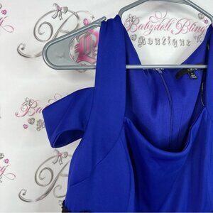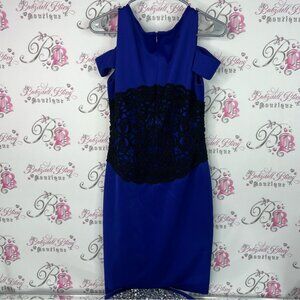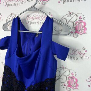 Signature by Sangria dress lace black detail Lacie Royal Blue Mini Dress