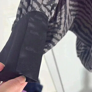 Not sure what size or content is. I think its a size S and the fabric is silk. Very soft hand feel.