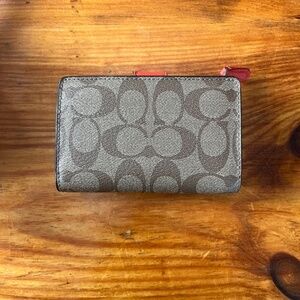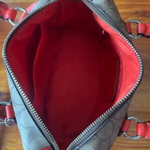 Signature Mini Bennett satchel Coach Duffle Purse and matching wallet Brown with Orange trim. Purse in mint condition, wallet has small tear inside (see photo)