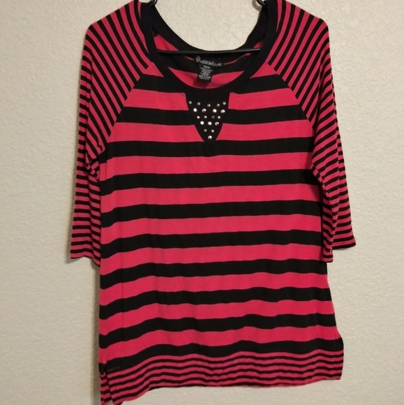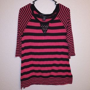 Signature studio striped shirt. Black and pink. Love the details on this shirt. 3/4 sleeves. Size small but could fit a medium very easily.