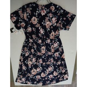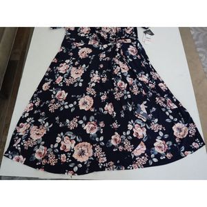 Signature x Robbie Bee Women's Plus Sz 2XL Navy Floral Print Midi Wrap Dress
