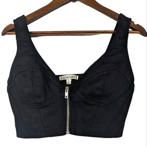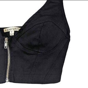 Signature8 Black Denim Corset Crop Top Zipper Front Country Concert Medium