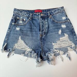 Signature8 Cotton Distressed Denim Ultra High Waisted Shorts Medium