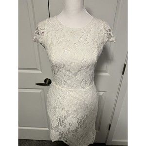 Backless Lace White Dress with pockets by Signiture 8 sz Large.