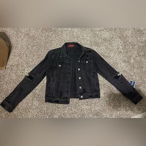 Super cute black distressed jean jacket. Too small for me. Size medium.