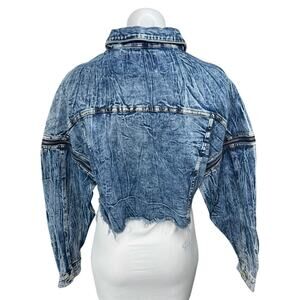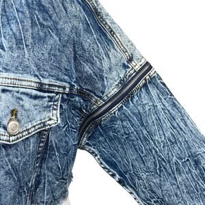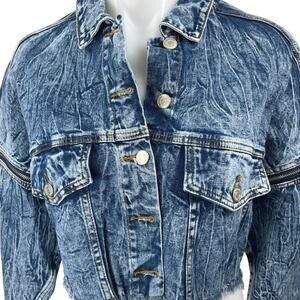 Signatures Blue Long Sleeve Button Up Frayed Crop Denim Jeans Coat Jacket Top M