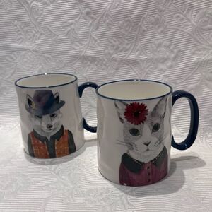Signatures Housewares Hipster Mugs (2) Cat & Wolf Design