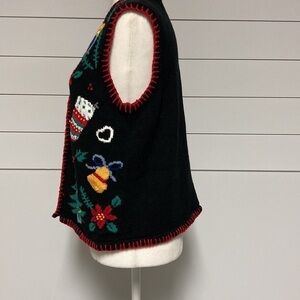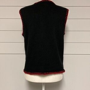 Size medium Signatures by Northern Isles hand embroidered holiday sweater vest. Black w/red stitch trim. Heart shape buttons.