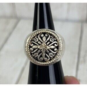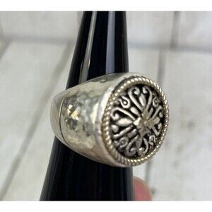 Signed AE Art's Elegance 925 Sterling Silver Scroll Design Hammered Ring Sz 6.25