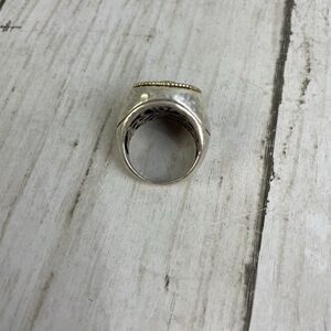 Hammered sterling silver ring. Measures about 6.25. Please see photos for uneven finished on ring and for it on the sizing stick.