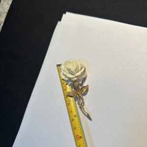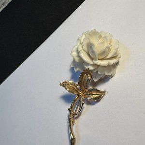 Signed Accessocraft NYC - Vintage Cream White Flower Stem Pin Brooch