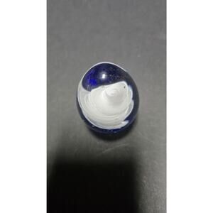 Signed Art Glass Egg Paperweight Cobalt Blue Clear White Swirl Studio Decor
