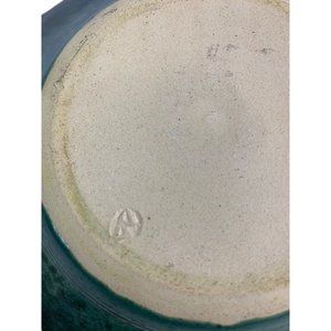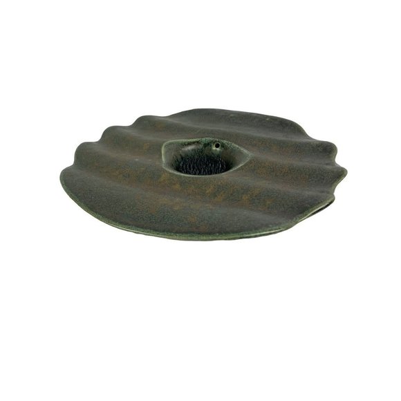 Signed Art Pottery Green Frog Speckled Glaze Lilypad Design