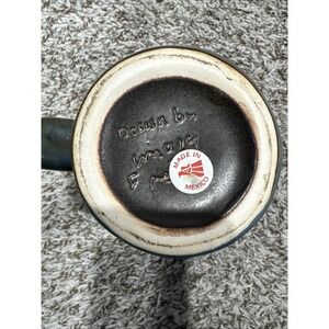 This is a unique and contemporary art pottery mug from Moo Mex Tribal Art Dance Symbol. It is handmade with ceramic material and features a black and blue color design with arts and crafts/mission style. The mug is signed and has a production technique of pottery. It is a perfect addition to your decorative cookware and dinnerware collection.