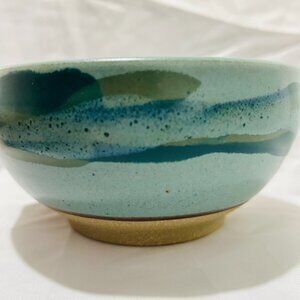 It is a Teal Blue green Glaze Stoneware piece that could be used for soup, chowder etc. and is signed by the artist.