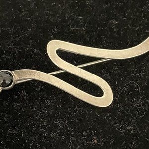 Signed Barbara Sucherman sterling silver pin brooch with small onyx stone setting. Modernist design. Vintage. Clasp is roll over hinge.
