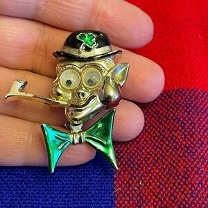 Signed Beatrix Enamel Google Eyed Leprechaun Brooch Vintage St. Patrick's Day