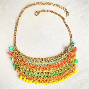Signed Bib Necklace Fruity Pebbles Teardrop Acrylic Beads On Gold Tone Chain