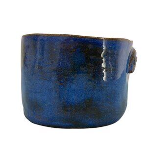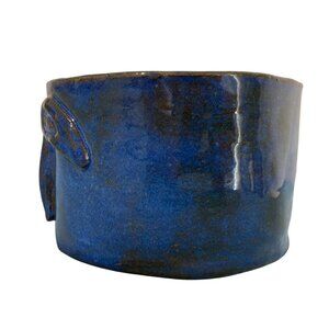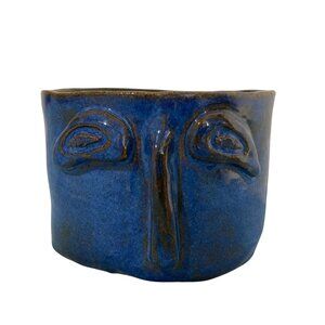 This planter pot features a unique face design in a striking blue hue. It's ideal for adding an artistic touch to indoor plants.