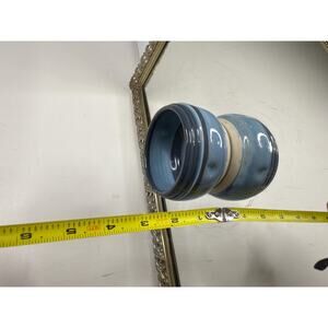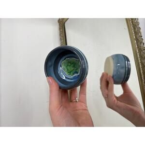Signed Blue Miniture Pottery Trinket Bowl, Small Blue Pottery Vase