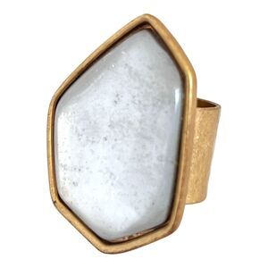 Signed Boheme Ring Size 7 Quartz Stone Hammered Gold Tone 5Z