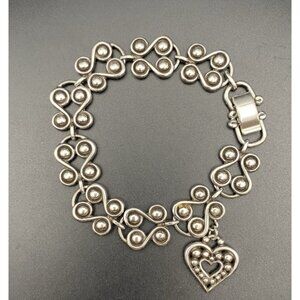 Signed Brighton Taos Heart Bracelet Silver Plate Retired 7.5" Southwestern