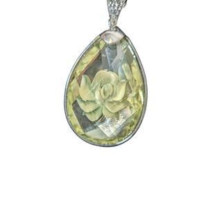 Signed C 1946 silver tone statement necklace green faceted drop floral design