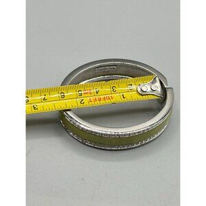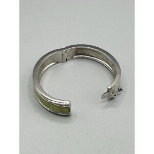 Signed Camille Lucie Hinged Bangle Bracelet Yellow Green Enamel and Rhinestones
