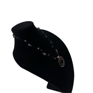 Signed Chicos 3 Strand Glass & 925 Bead Round Leather Inset Pendant Necklace 22”