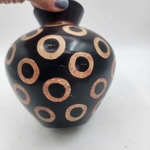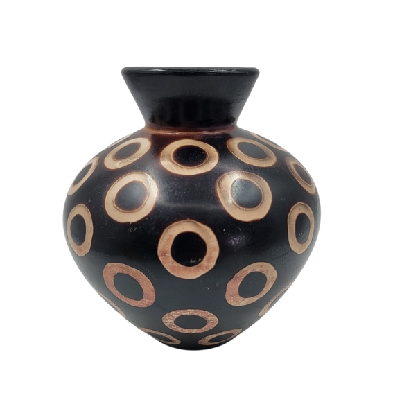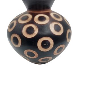 Signed Chulucanas Valeriana Peru Black Pottery Vase Circles Design