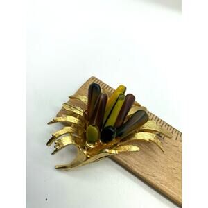 Signed Coro Vintage Brooch Pin browns & Goldtone Granny Core