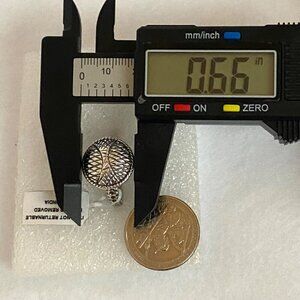 Please note photos are zoomed in to show details so item may appear larger, please view all photos for sizing reference as measurements and comparison is provided. It may appear there is darkness on the polished surface of jewelry but this is due to shadows while photographing.
