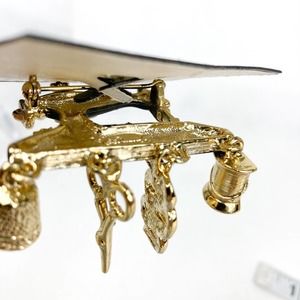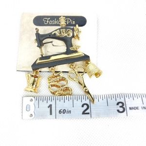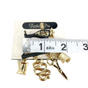 Signed Danecraft Fashion Pin with Black Sewing Machine & dangling sewing charms