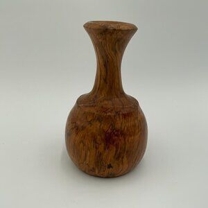 This handcrafted artisan bud vase is a unique addition to any collection. The natural aged wood gives it a rustic look, and the turned wood design adds to its beauty. The vase is medium sized with a height of 7 inches and a weight of 1 lb. It is signed and dated by the artist, Jack B. Hallonquist, making it an original piece. It can be used for decorative purposes. This vase is perfect for those who appreciate handmade items and appreciate the beauty of wood.