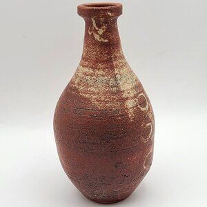 Signed Earthenware Studio Art Pottery Primitive Abstract Folk Art Bud Vase 7.5"