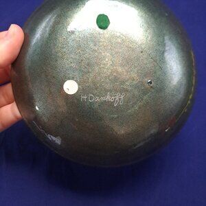 Signed Enamel On Copper Plate Dish Abstract Art Signed H Dankoff